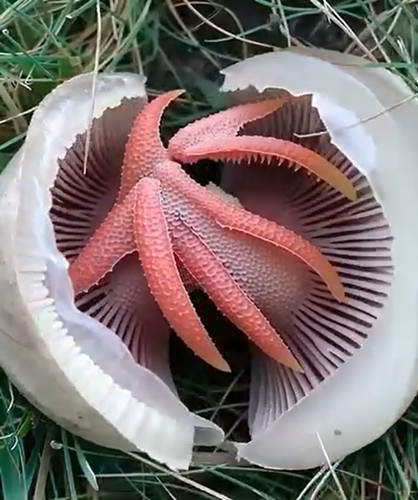 Upon closer inspection, the vibrant red mass revealed a structure that emanated an unsettling beauty, with multiple finger-like extensions radiating outward. Each projection tapered to a sharp point, resembling something from a nightmare rather than a natural organism. As the noxious scent enveloped me, I began to reconsider my initial thoughts. What I saw before me was not merely the remnant of a deceased creature but rather an extraordinary manifestation of nature’s creativity — a living organism that was, in fact, the infamous Devil’s Fingers mushroom, or Anthurus archeri. My confusion turned to intrigue as I realized I was face-to-face with a species both fascinating and grotesque.