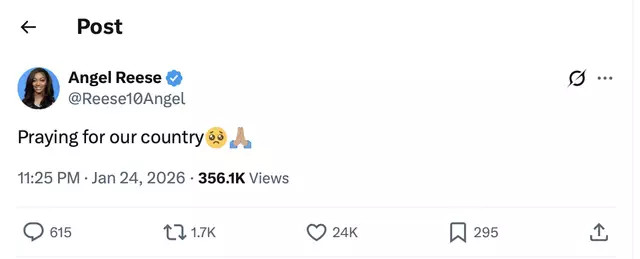 The public’s reaction to the incident has been swift and deeply emotional, resonating with a widespread concern about the implications of what transpired. Angel Reese, a star player for the Chicago Sky, released a heartfelt message on her social media platform, stating, “Praying for our country.” While her words may not have addressed the specifics of the incident directly, they struck a chord with many who felt the weight of the tragedy. The sentiment of prayer and reflection has been echoed by various public figures, emphasizing the urgent need for unity and healing in the face of such devastating events. In addition to Reese, other notable athletes and public figures have voiced their support for Pretti’s family. Their collective statements have sparked conversations around the systemic issues that contribute to such tragedies. The reaction from within sports communities has highlighted not only the emotional impact of Pretti’s death but also the broader societal implications, connecting the dots between healthcare, law enforcement, and immigrant rights.