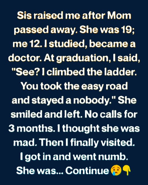 In the wake of our mother’s death, my sister made a series of difficult decisions. She quietly left college, the very place where she had hopes of pursuing her ambitions—her dreams of becoming a teacher and inspiring young minds. Instead, she took on multiple jobs, juggling responsibilities that no one her age should have to bear. She became a waitress during the day and worked in a grocery store at night, often coming home exhausted but determined to provide for me. Her resilience was remarkable; she learned the art of creating a home out of very little. With each passing day, she whispered words of encouragement, assuring me that we would be alright, often masking her struggles behind a warm smile. I remember vividly her attempts to keep our spirits high; she would bake simple treats, like chocolate chip cookies, trying to recreate the warmth of our home. In many aspects, we were thriving. I excelled in school and transitioned smoothly into college, eventually embarking on the rigorous journey of medical school.
