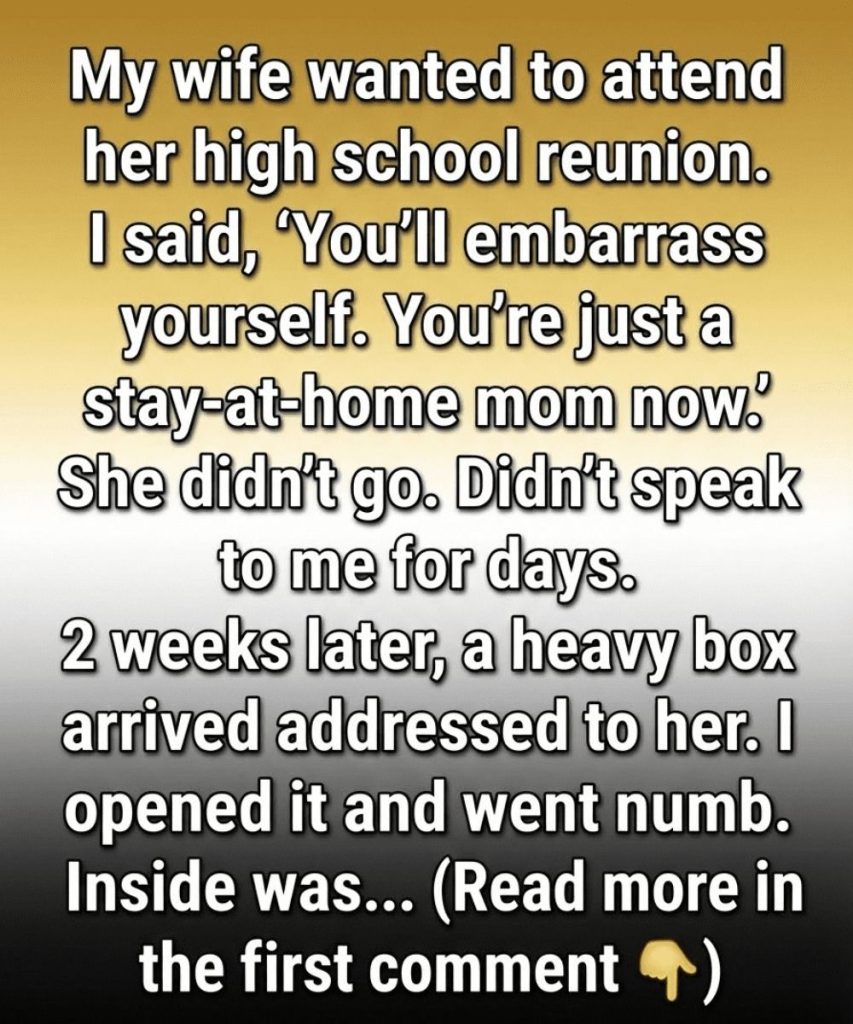 Sitting there on the floor, surrounded by tangible evidence of the woman I had overlooked, I felt a profound sense of realization wash over me. The letters from her teachers and mentors celebrated her intelligence and resilience, while the notebooks contained ideas she still pondered late into the night, after our household had settled into silence. Nestled carefully among her mementos was that very reunion invitation. No longer did it resemble a relic of a forgotten past; instead, it emerged as a reflection of her vibrant identity—a reminder of the passions that once fueled her life, now overshadowed by day-to-day responsibilities.When she returned home, I could no longer hold back my remorse. “I’m sorry,” I declared, my words an earnest confession rather than a hurried apology. I acknowledged that my dismissive comment stemmed from my own insecurities, a failure to see her as a multifaceted individual rather than a mere role she filled in our family dynamic. In that moment, I realized how crucial it was to honor her past and the complexities that shaped her. She listened intently, her expression unbroken. Then, with quiet confidence, she replied, “The box wasn’t meant to shame you; it was a reminder for me, in case I ever forgot who I was.” It was a revelation that shifted our conversation from the mundane to the meaningful, prompting us to explore the depths of our identities together.