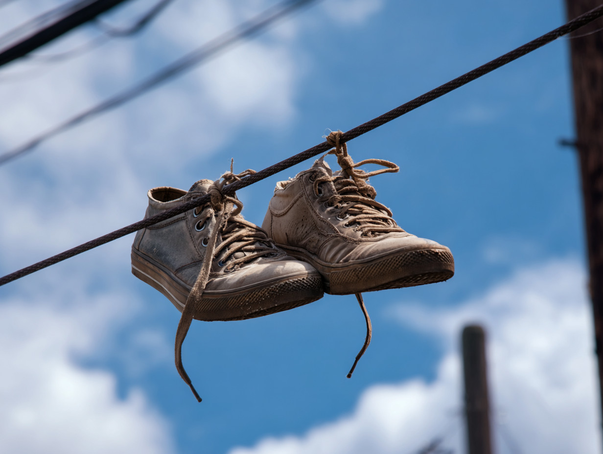 Historically, the sight of shoes strung up on power lines has sparked various theories and urban legends. While many initially perceive it as a harmless display of rebellion or a fun game among children, research indicates that the meaning behind this practice can vary significantly based on geographical location and community context. In some neighborhoods, shoes hanging on wires are believed to mark territory for gangs or signify locations where drug transactions occur, as indicated in multiple studies and articles exploring the urban myth. For instance, in certain areas of Los Angeles, residents have noted that sneakers on power lines can serve as a warning sign, signaling the presence of dangerous activities or a gang’s influence. A prevalent theory suggests that these sneakers serve as a form of communication, signaling to residents and outsiders alike about the presence of illicit activity. Yet, this interpretation is not universally accepted. In many urban centers, shoes on wires are seen more as playful expressions of youth culture rather than ominous warnings. Stories abound of children bravely hurling their old sneakers into the air, aiming for that perfect landing on the line, all to see if they can do it. Such actions, filled with laughter and camaraderie, reflect a communal spirit and a sense of adventure. The shoes become not only a display of athletic prowess but also a bridge connecting generations through shared experiences and memories.