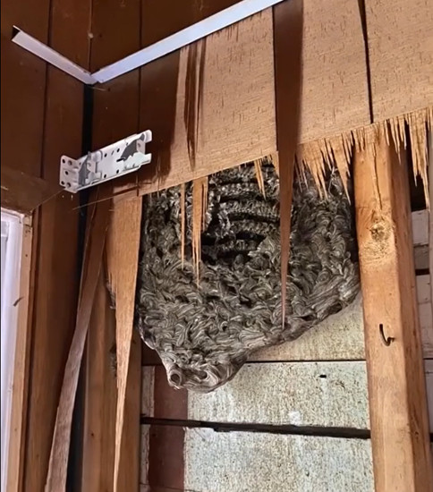 Behind the shattered drywall was an enormous wasp nest — not a quaint cluster hidden away in the attic, but a sprawling colony that dominated every vertical space, from floor to ceiling. Thousands of wasps thrummed in chaotic harmony, their wings vibrating with a life force that felt palpable. In that moment, time seemed to freeze as we realized we had been living mere inches away from this dangerous, venomous hive. The weight of our ignorance crashed down upon us. Had we delayed even a single hour longer, we could have faced a catastrophic swarm unleashed within our home.