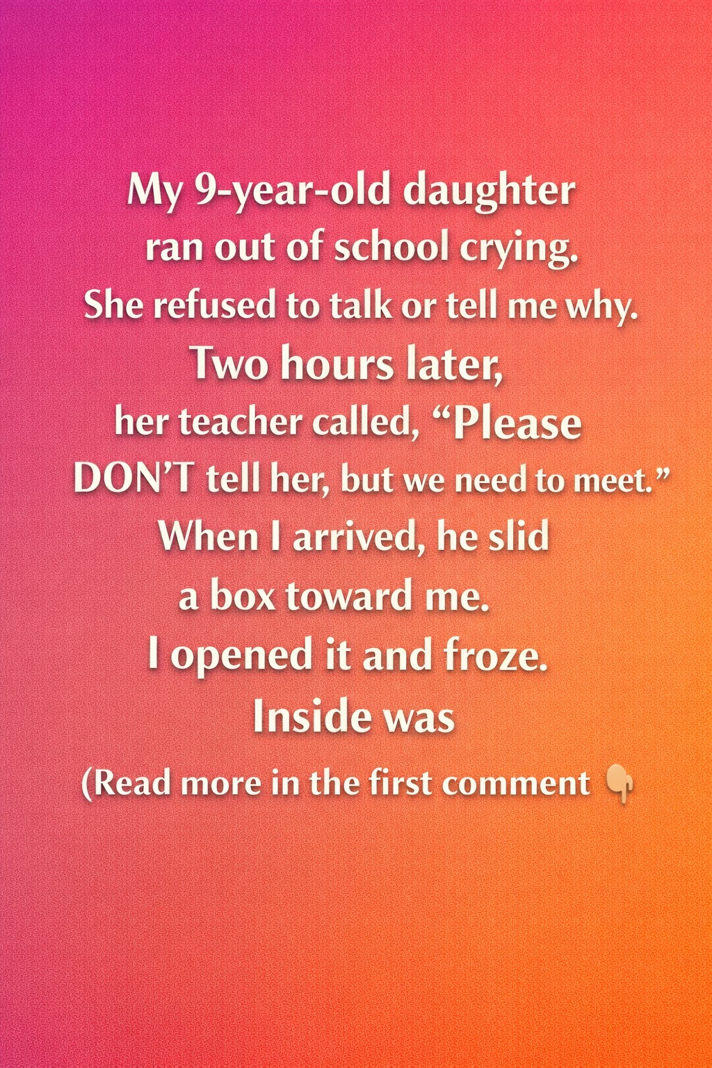Then, the phone rang. My daughter’s teacher was on the line, his voice calm yet deliberate—a tone that suggested he was carefully navigating a sensitive situation. “Please don’t tell her,” he cautioned softly, “but could you come by the school?” Upon my arrival, he guided me into a small room adorned with vibrant children’s art, a stark contrast to the heavy atmosphere that loomed. He did not sit but instead slid a plain cardboard box across the table, as if it held a weight far greater than its simple exterior suggested. “Open it,” he said gently, a request that felt more like a tender invitation to explore an emotional landscape. The way he presented the box hinted that it was more than just a collection of items; it was a portal into my daughter’s inner world.