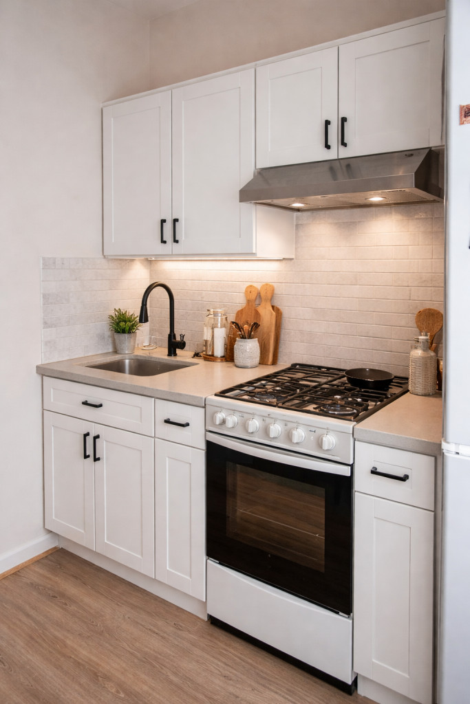 The first order of business was to remove the outdated cabinetry. What had once felt dark and oppressive was replaced with bright, modern cabinets that immediately created a sense of space and renewal. The transformation continued with a fresh coat of paint on the walls, utilizing warm, neutral tones that turned the kitchen from a gloomy pit into a welcoming haven. He chose a soft beige that worked wonders in reflecting light and made the room feel larger. Next, he tackled the aged countertops, ripping out the stained and cracked surfaces in favor of sleek, contemporary options that were not only stylish but practical. He opted for a beautiful quartz material that provided both durability and elegance. A new backsplash was added too, chosen for its balance of character and subtlety, enhancing the overall aesthetic without overwhelming the design.