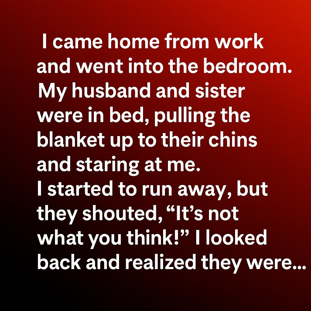 There, beneath the covers of our bed, lay an unexpected scene—my husband and sister were snuggled together, the blanket snugly pulled up to their chins. Their startled expressions mirrored my own shock. In that heartbeat, my heart sank, and a wave of confusion washed over me.