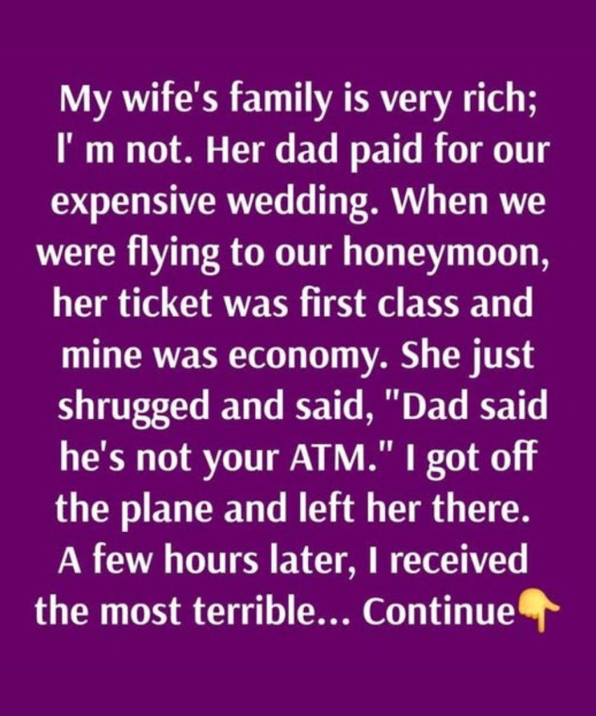 What was meant to be a joyous honeymoon quickly transformed into a painful revelation. As they prepared to board their flight, Darren was blindsided to discover that his wife was seated in first class while he was relegated to the economy section. Initially, he thought it was an error, a misunderstanding that could easily be rectified. Yet, when he inquired about the seating arrangements, her response felt like a dagger piercing through his heart: “Dad said he’s not your bank.” This remark struck a chord deep within him, highlighting the stark differences in their worlds. Despite all his sacrifices to build a life together, he perceived this act not as an indulgence but as an affront to his dignity, leaving him questioning his role and worth in their relationship.