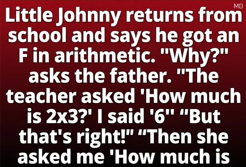 After a particularly stressful day at school, Johnny approached his father with news that would typically induce panic in most households: he had received a failing grade in math. However, rather than displaying the expected frustration or disappointment, Johnny remained calm, ready to explain the circumstances surrounding his grade. His father, bewildered by both the failing mark and Johnny’s nonchalant demeanor, pressed for details. Johnny recounted the events of his math class, illustrating the moment that had led to his unexpected outcome.
